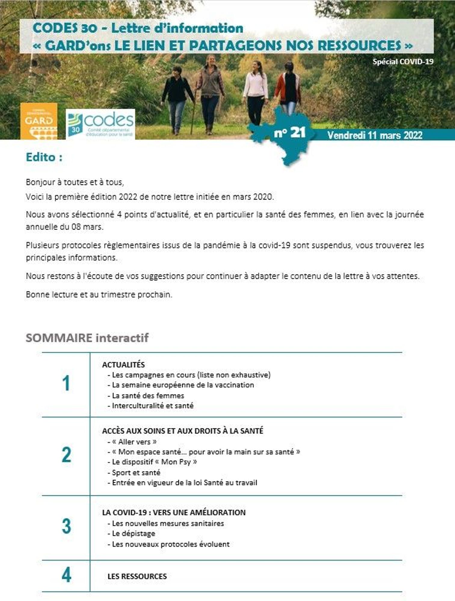 Nous avons sélectionné et nous partageons avec vous l’actualité de ce trimestre, notamment l’amélioration de la situation sanitaire avec l’allègement des mesures, et également un point spécifique sur la santé des femmes.