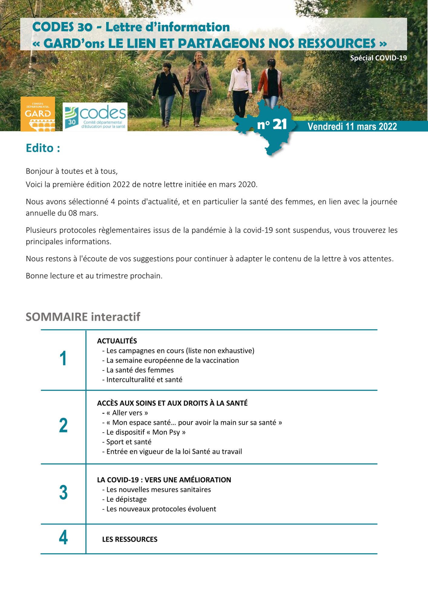 Veuillez trouver ci-joint la lettre d’information n°21.