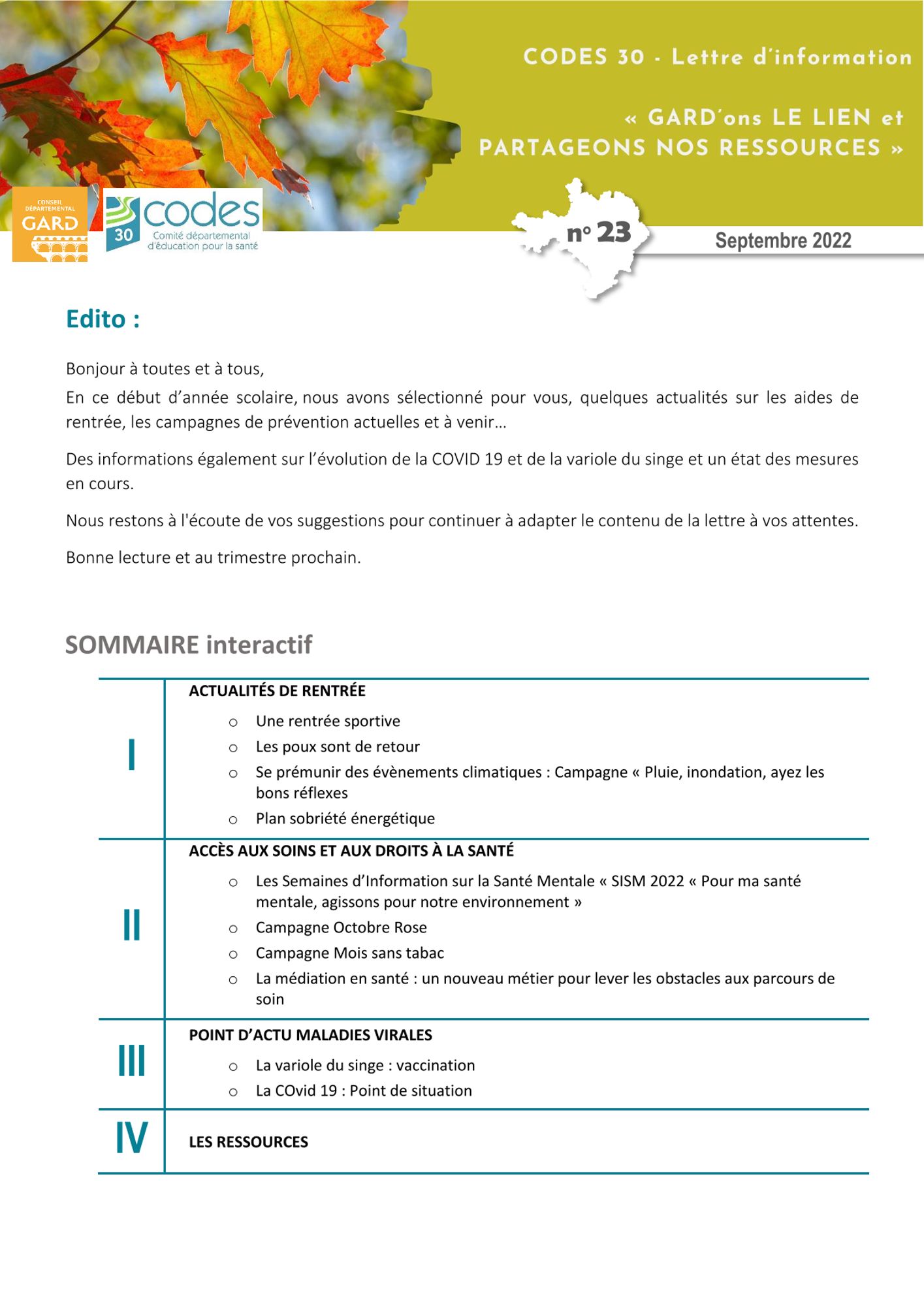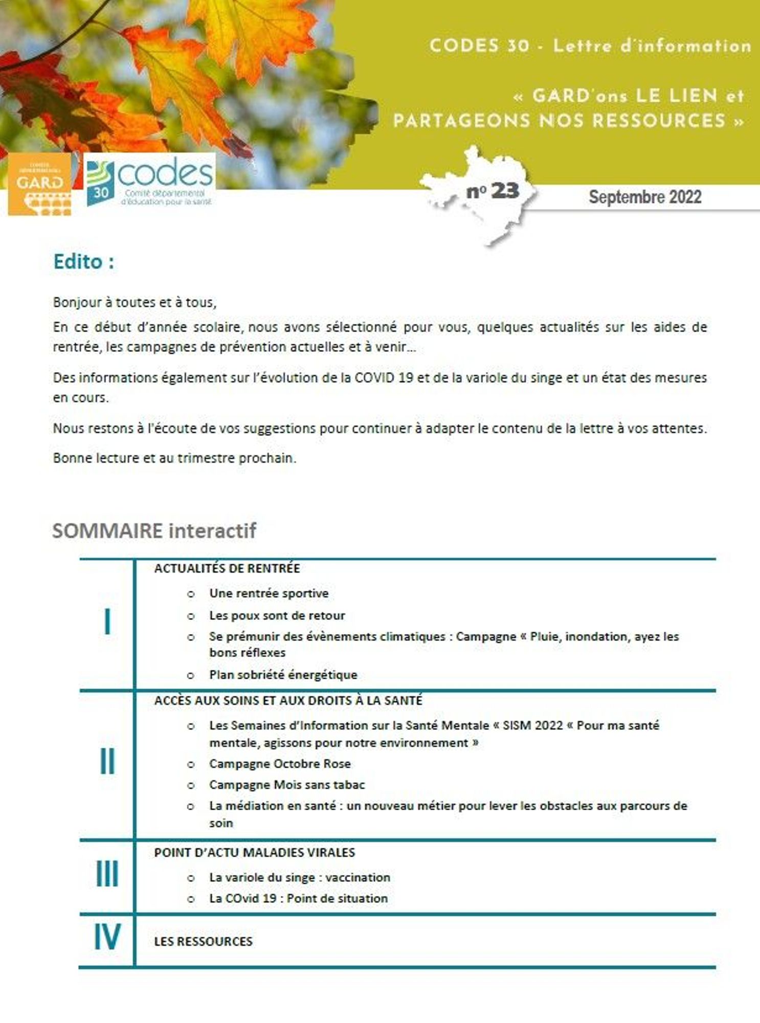 Vous trouverez ci joint la nouvelle édition de la lettre "Gard'ons le lien et partageons nos ressources".