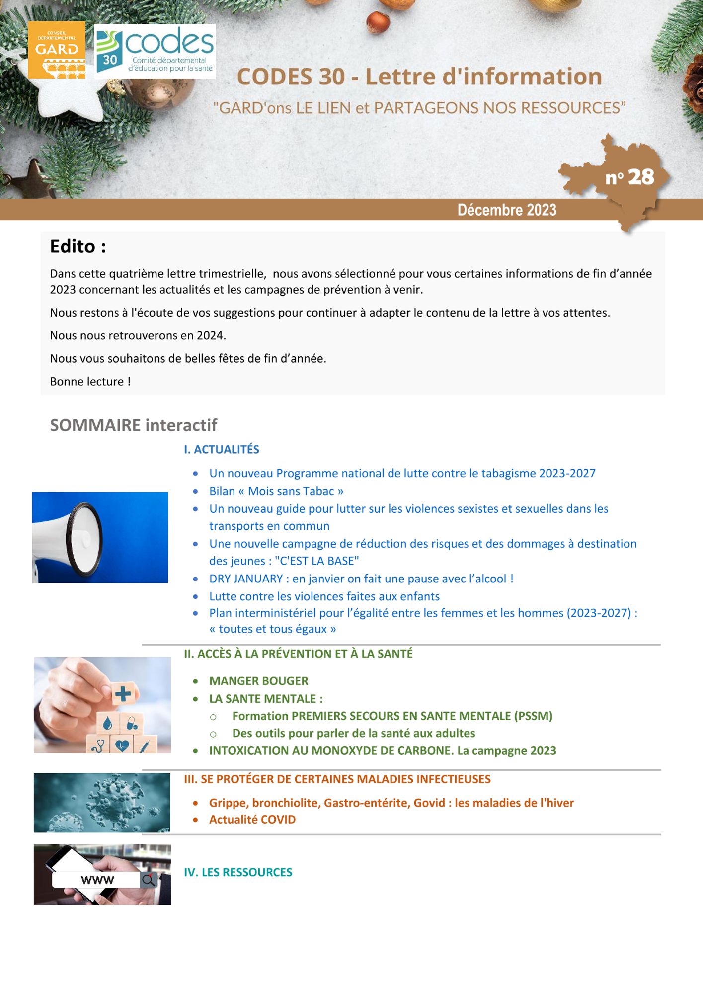 Lettre d'information N° 28 du CAPS. Collectif pour Agir en Prévention et en Santé