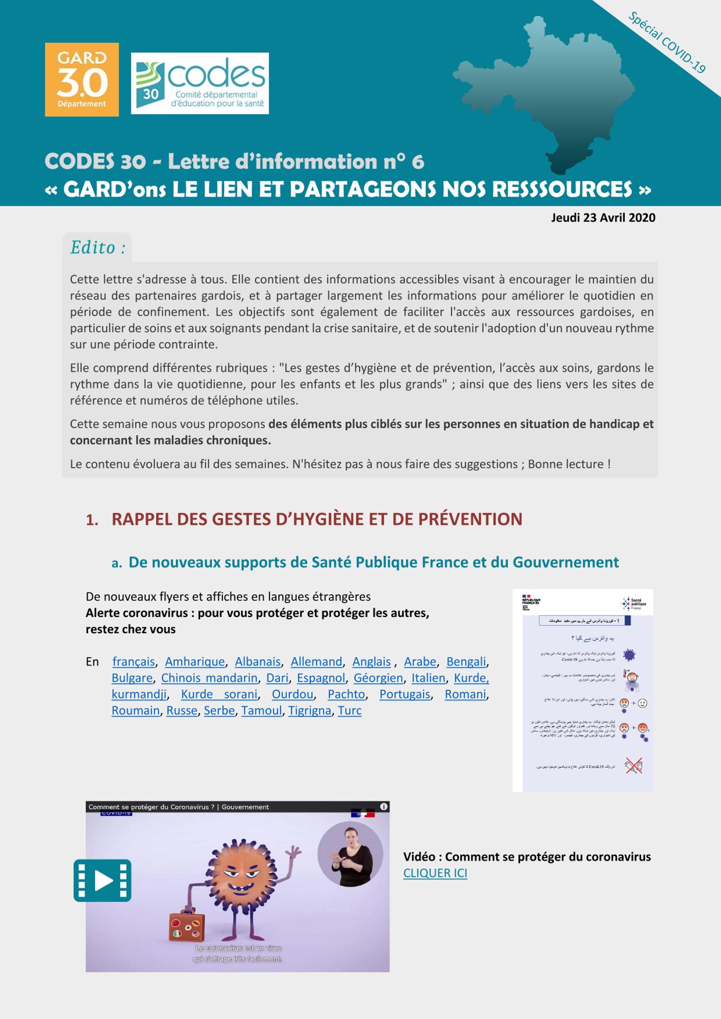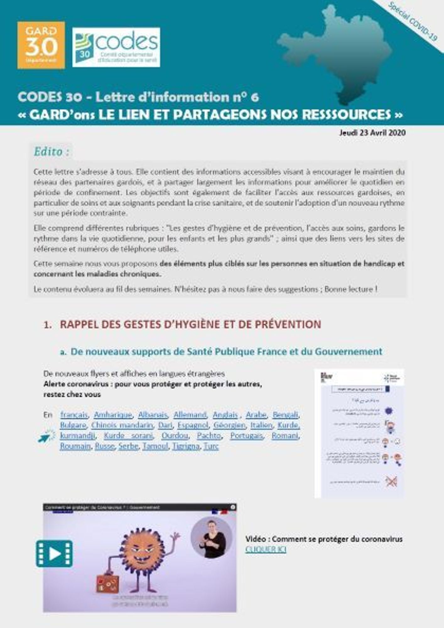 Elle s'adresse à tous. Elle contient des informations accessibles visant à encourager le maintien du réseau des partenaires gardois, et à partager largement les informations pour améliorer le quotidien en période de confinement. Les objectifs sont également de faciliter l'accès aux ressources gardoises, en particulier de soins et aux soignants pendant la crise sanitaire, et de soutenir l'adoption d'un nouveau rythme sur une période contrainte.