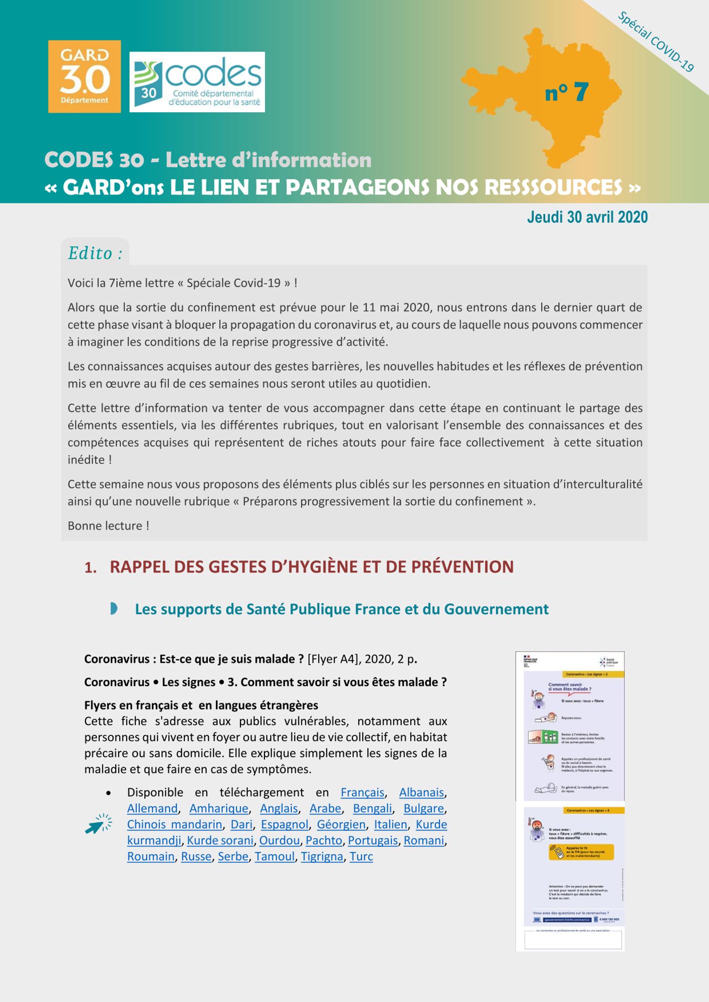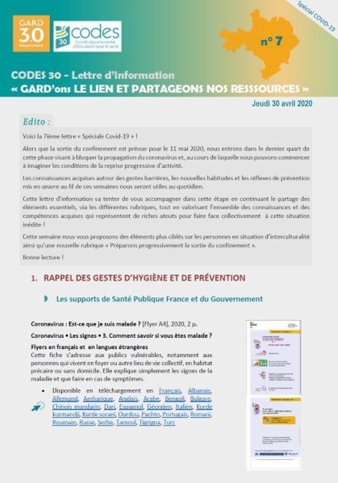l'accès aux ressources gardoises pendant la crise sanitaire et de soutenir l'adoption d'un