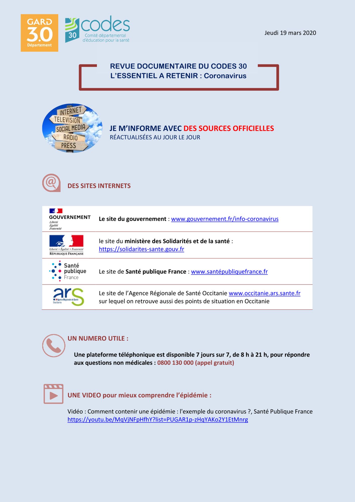 Veuillez trouver en pièce jointe, une nouvelle revue documentaire synthétique concernant le coronavirus afin de pouvoir: