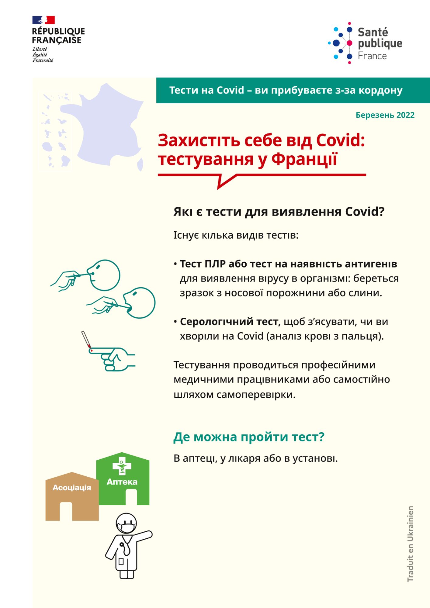 Se protéger du Covid : les tests en France [Fiche Réfugiés - Tests Covid - Vous arrivez en France - Ukrainien]