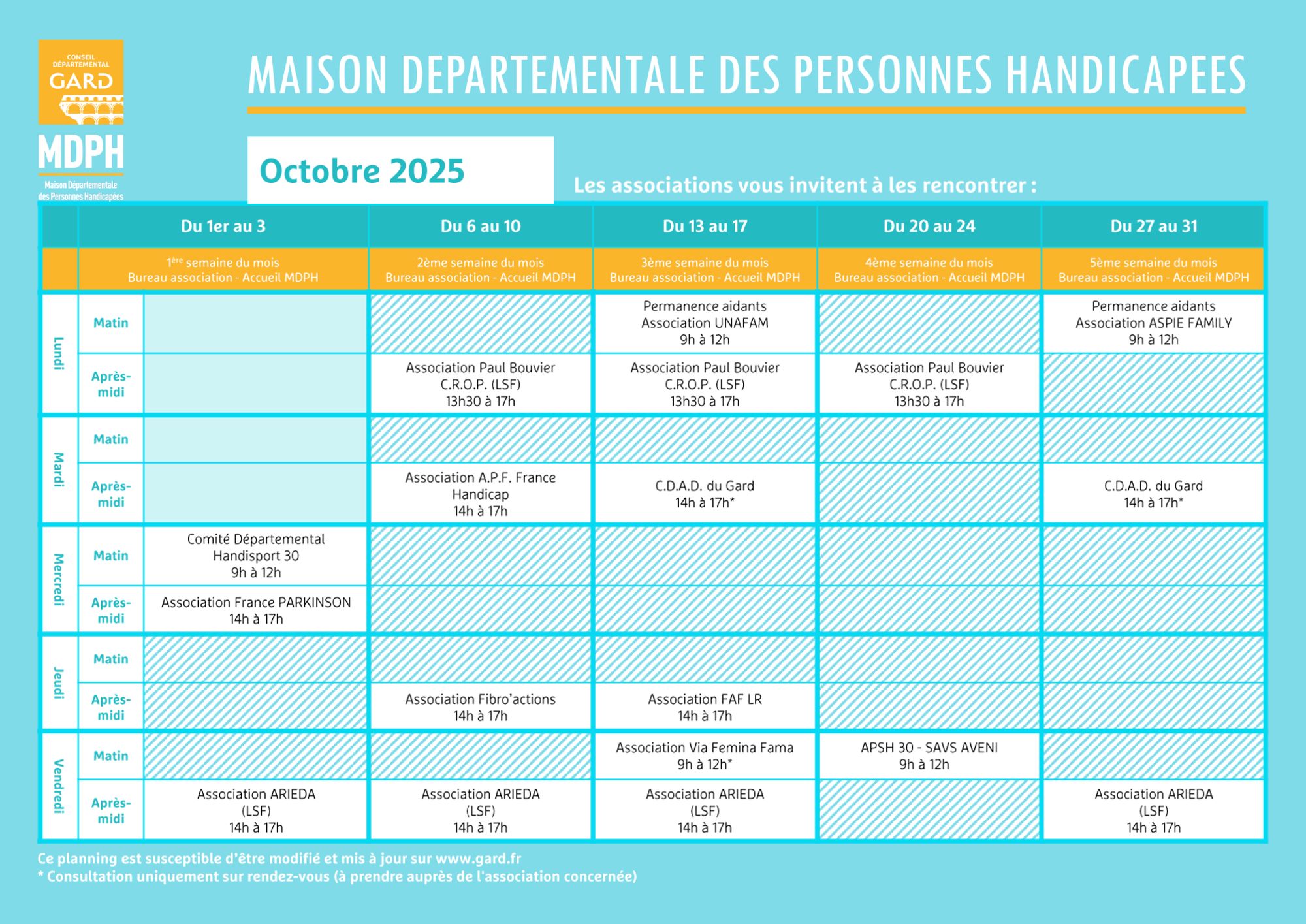 Planning Octobre