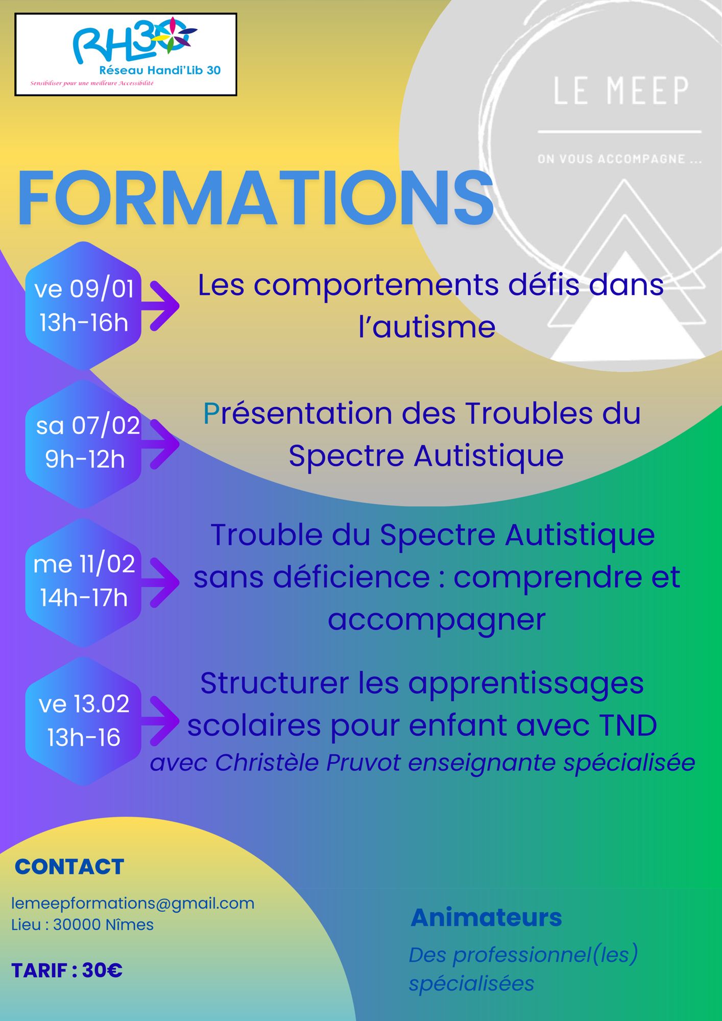 L’équipe du MEEP - Méthode et Expertise Éducative et Psychopédagogique propose une formation courte, concrète et accessible, pensée pour répondre à vos besoins du quotidien.