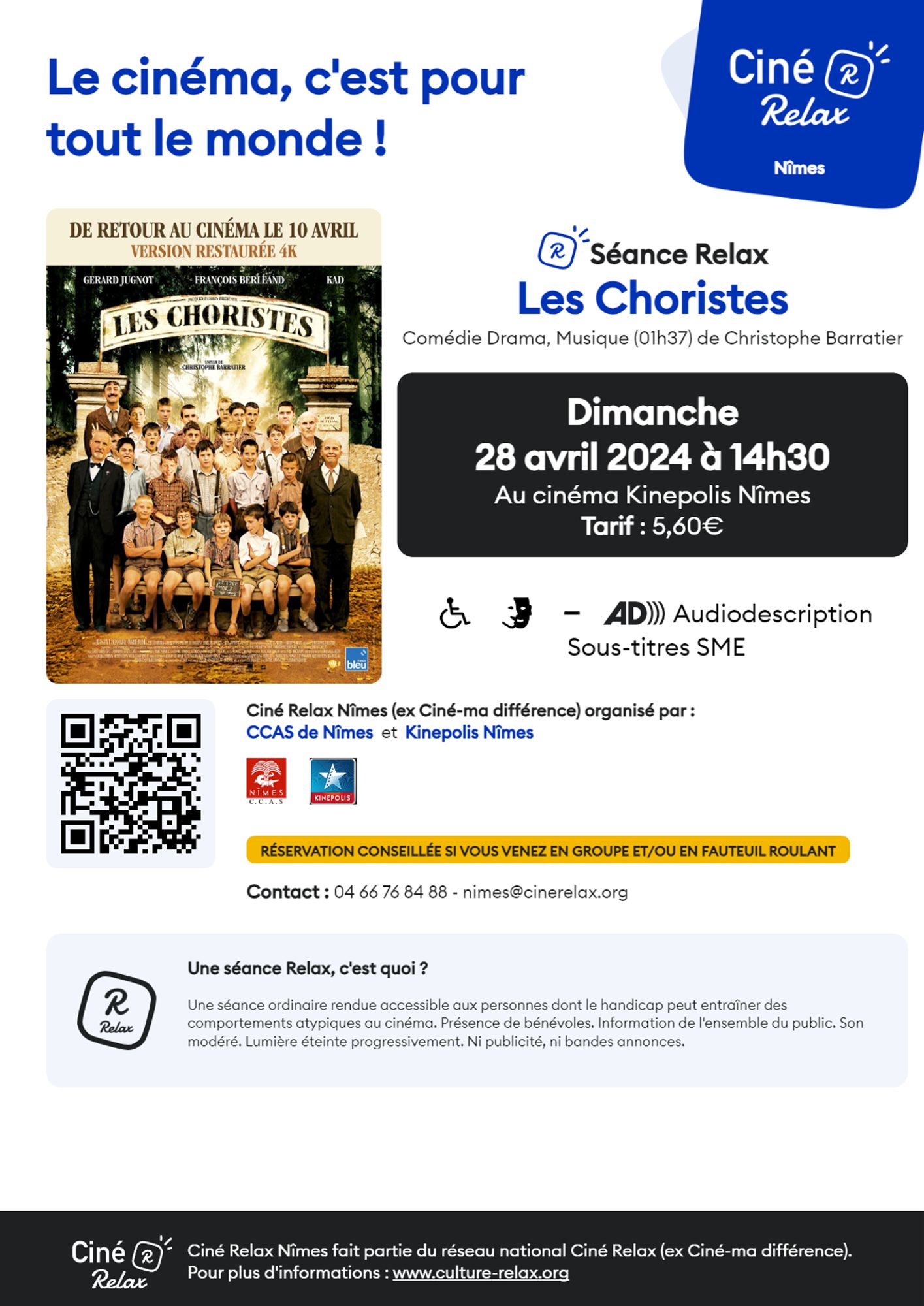 Le CCAS de Nîmes, en lien avec Madame Véronique JOUVE-SAMMUT - Conseillère déléguée aux Handicaps et à l’Accessibilité, a le plaisir de vous communiquer la date de la prochaine séance "Ciné Relax" programmée au Cinéma Le KINEPOLIS