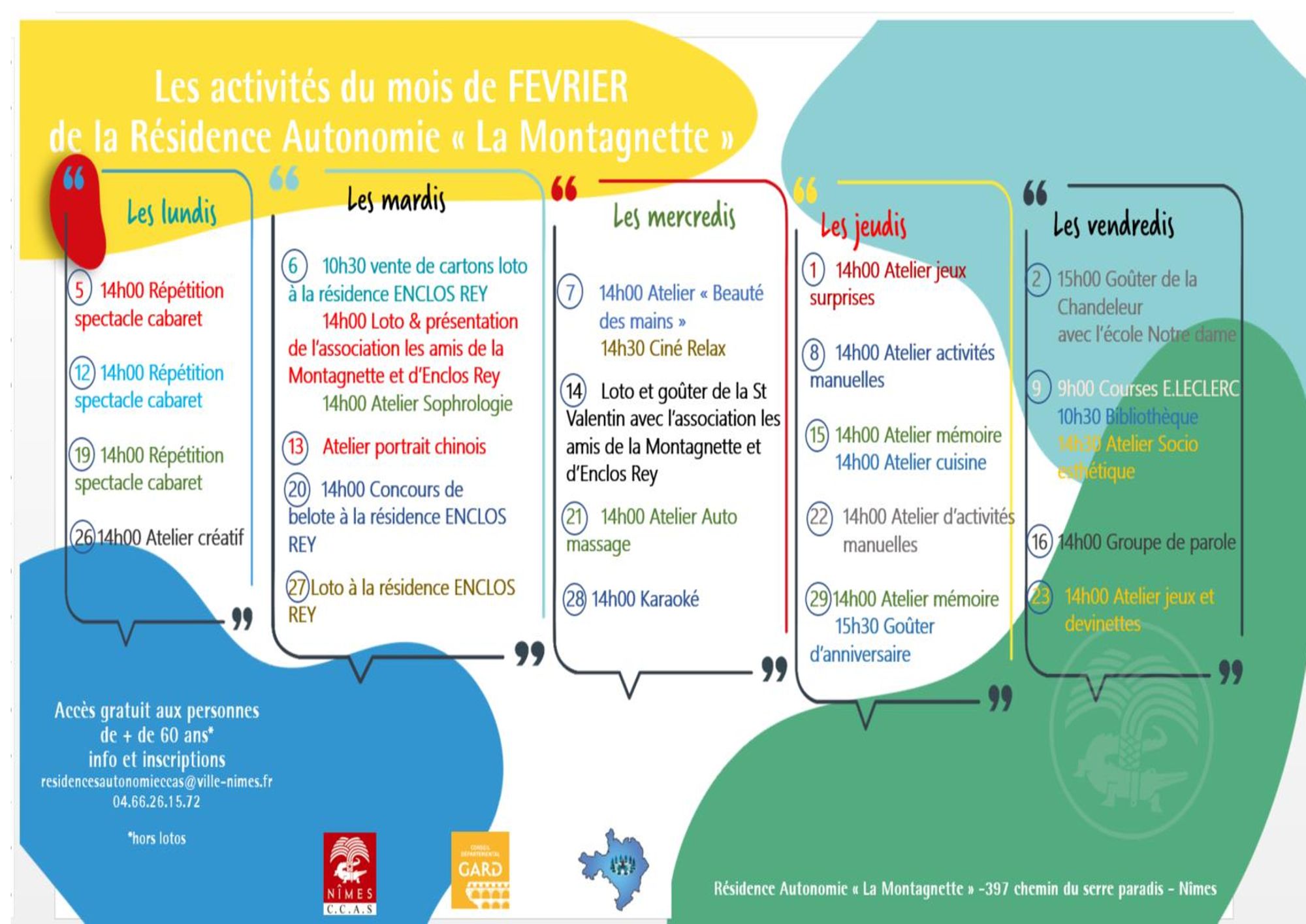 Retrouvez en téléchargement en bas de page le planning des animations qui se dérouleront en février à la Résidence autonomie « La Montagnette ».