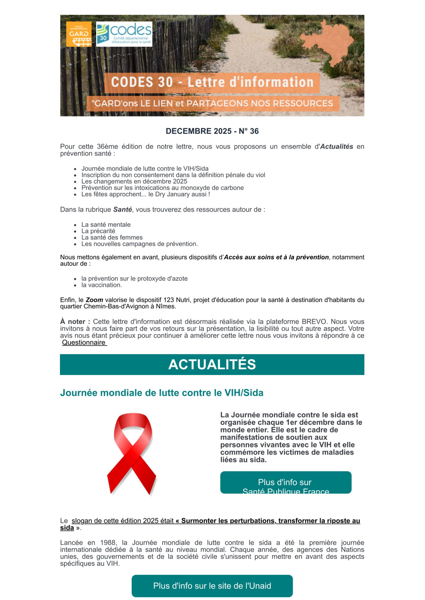 Pour cette 36ème édition de notre lettre, nous vous proposons un ensemble d'Actualités en prévention santé :
