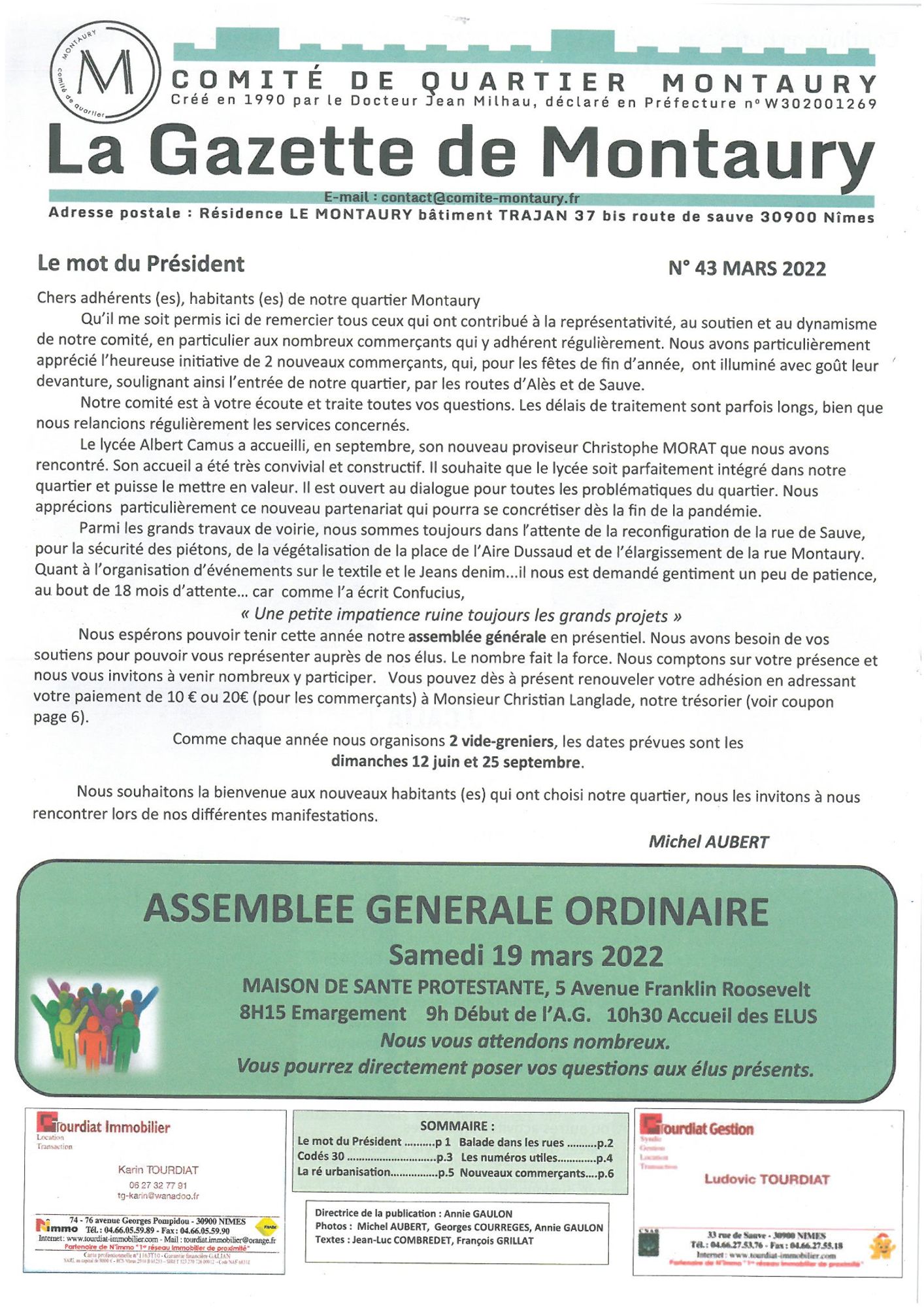 Nous avons été sollicités fin 2021 par le Comité de Quartier Montaury pour paraître dans un numéro de la Gazette, aux côtés des nouveaux commerçants du quartier.