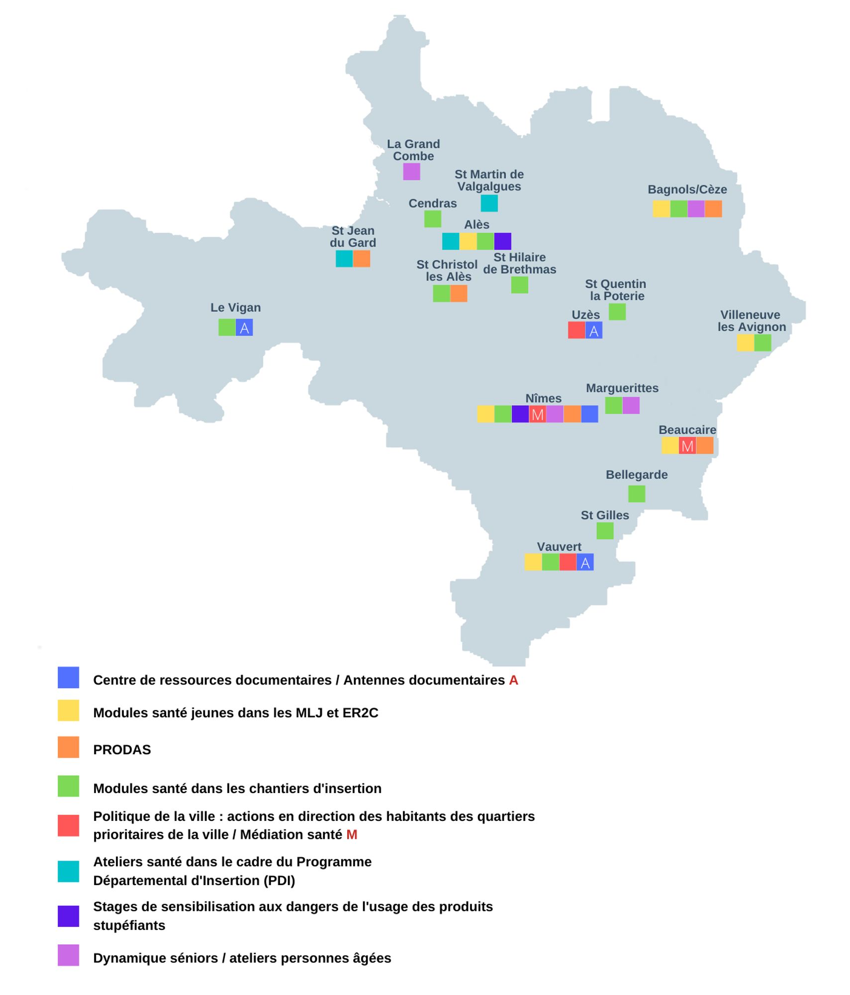 - Conseil Départemental du Gard dans le cadre du Programme Départemental d’Insertion pour l’accompagnement d’un collectif d’acteurs de la santé et du social.