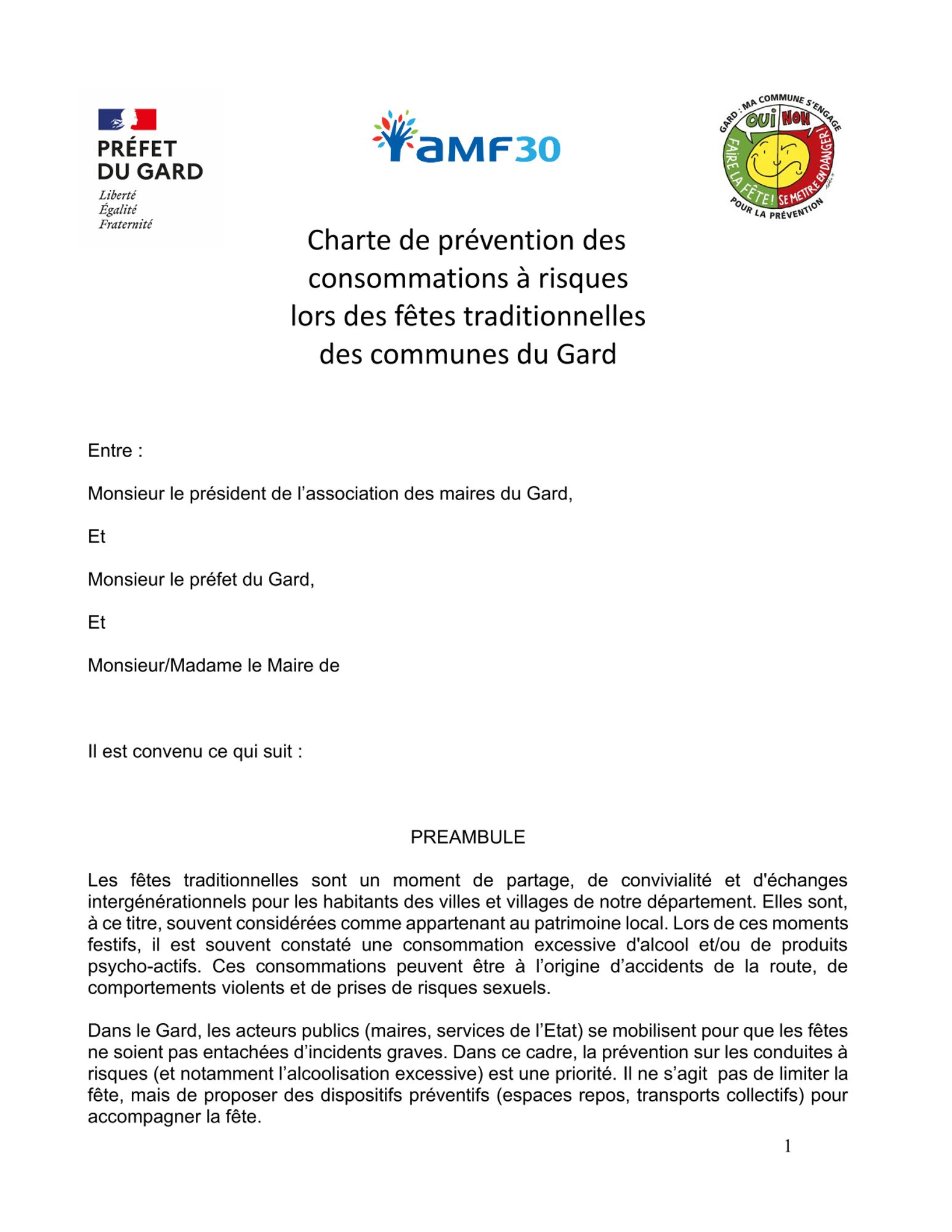 Pour cela, la première démarche à faire est de signer la charte de prévention des consommations à risques lors des fêtes traditionnelles des communes du Gard.