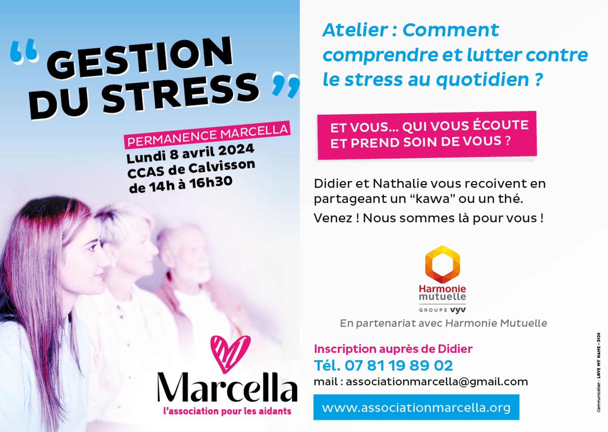 L’association Marcella en partenariat avec Hamonie Mutuelle propose un atelier « Comment comprendre et lutter contre le stress au quotidien ».
