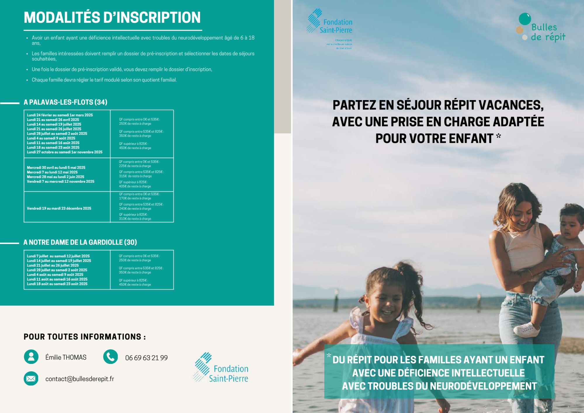 Vous avez un enfant de 6 à 18 ans, atteint d’un trouble spécifique du neurodéveloppement (principalement de type Troubles de spectre autistique) et avez besoin d’une semaine de répit en famille pendant les vacances d’été, dans un lieu adapté, La Fondation Saint-Pierre, soutenue par les partenaires du Gard, vous propose :