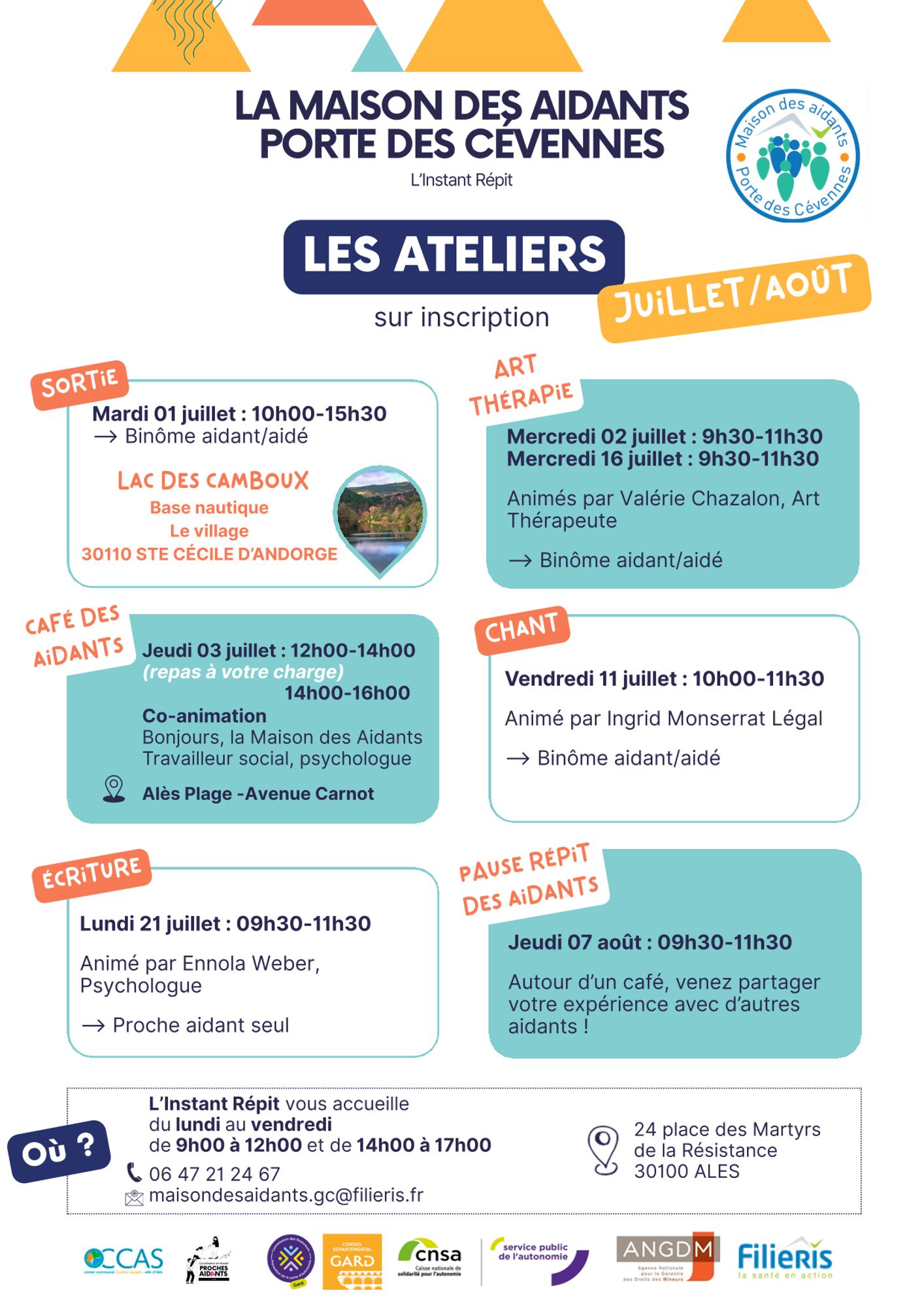 Aux mois de juillet et août, la Maison des Aidants vous propose :