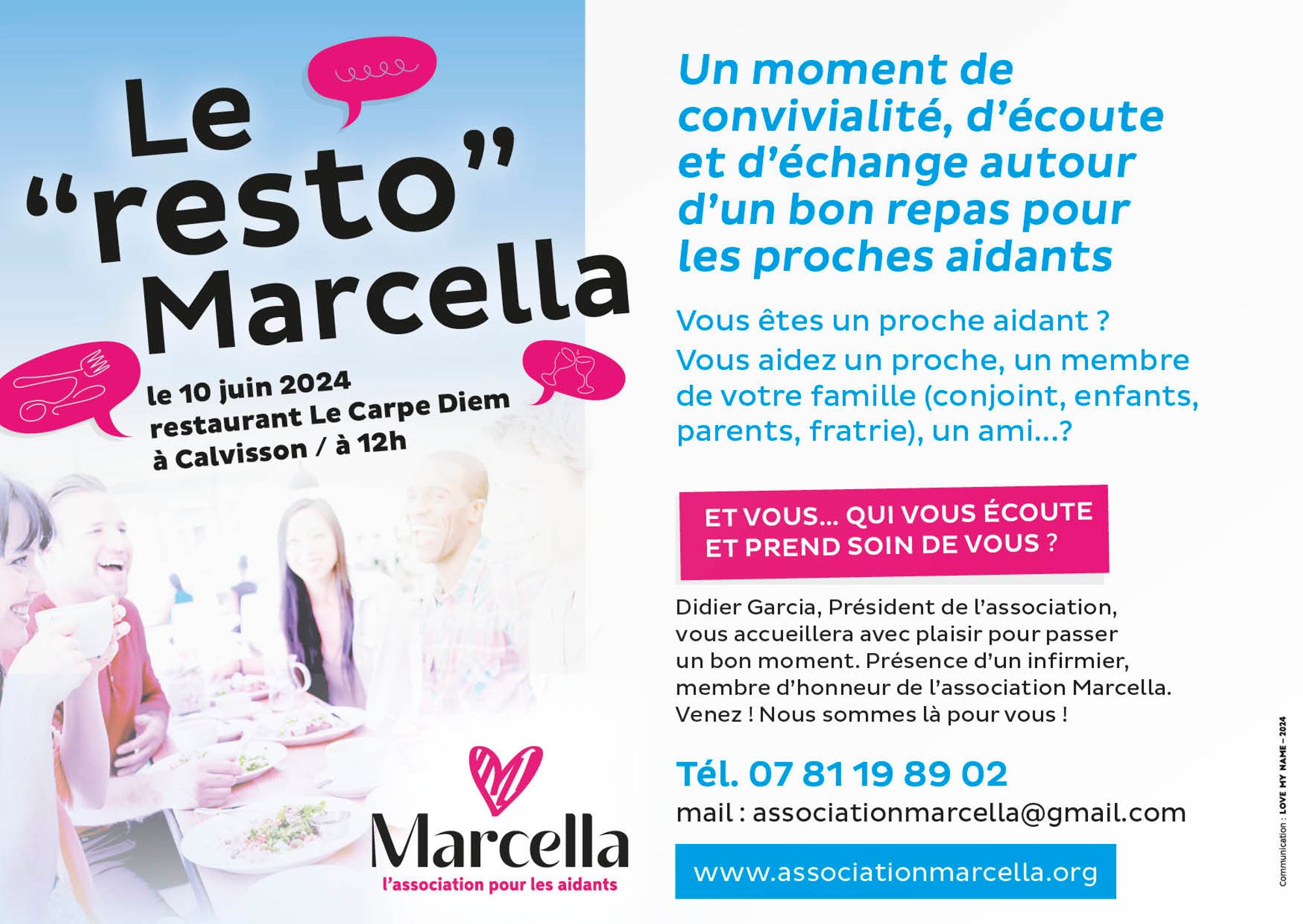 Didier Garcia, Président de l'association vous accueillera avec plaisir pour passer un bon moment. Présence d'un infirmier, membre d'honneur de l'association Marcella.