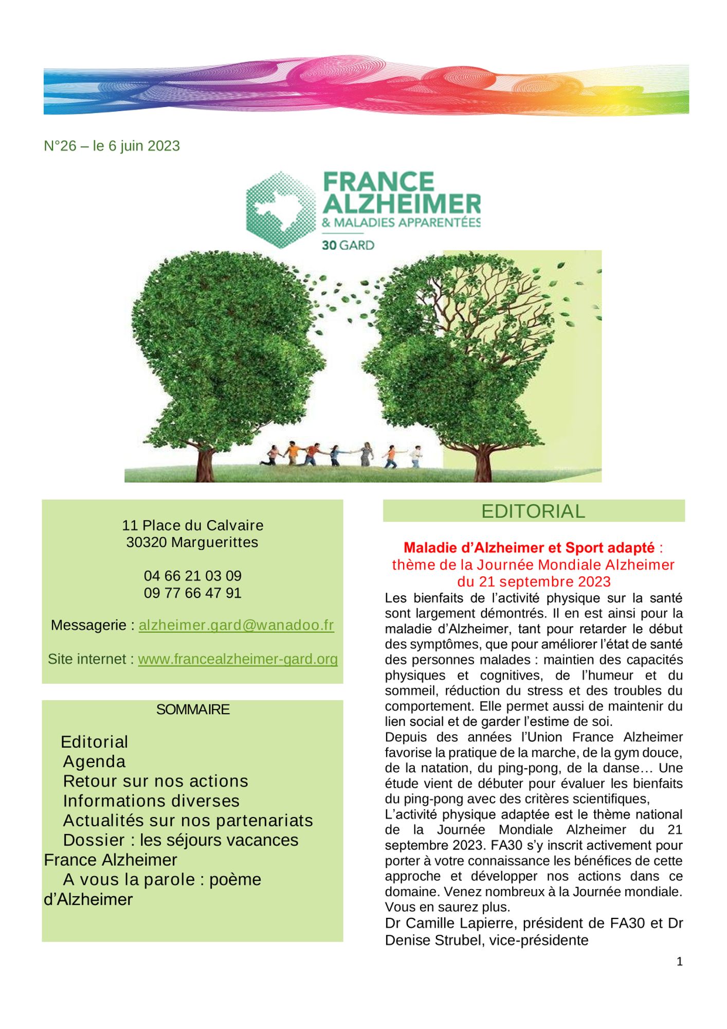 N°26 _ Le 6 juin 2023, édité par France Alzheimer Gard