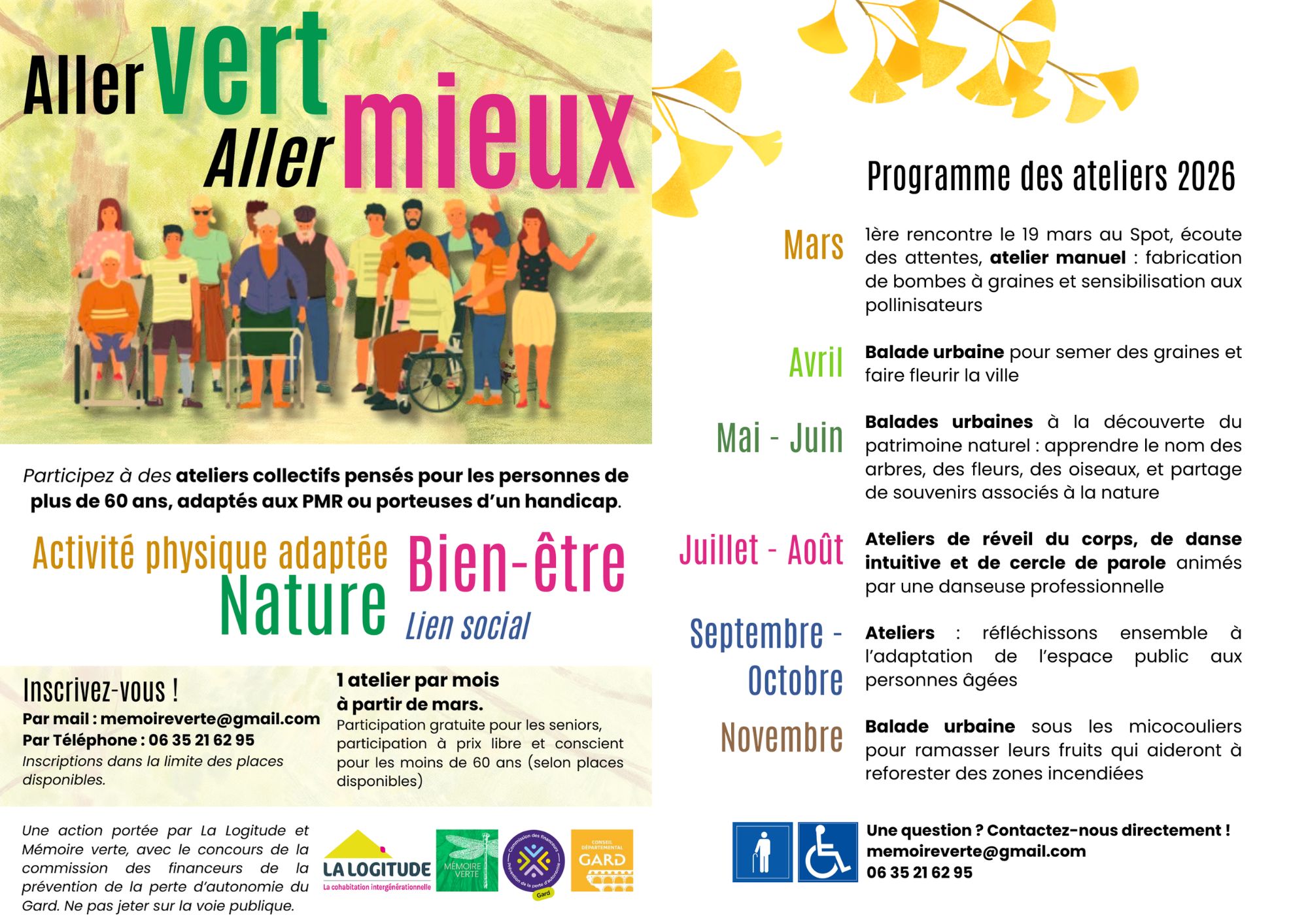 Mémoire verte et La Logitude proposent cette année un cycle d'ateliers mensuels liant santé mentale, activité physique adaptée, lien social et nature, organisés avec le concours de la commission des financeurs de la prévention de la perte d’autonomie du Gard.