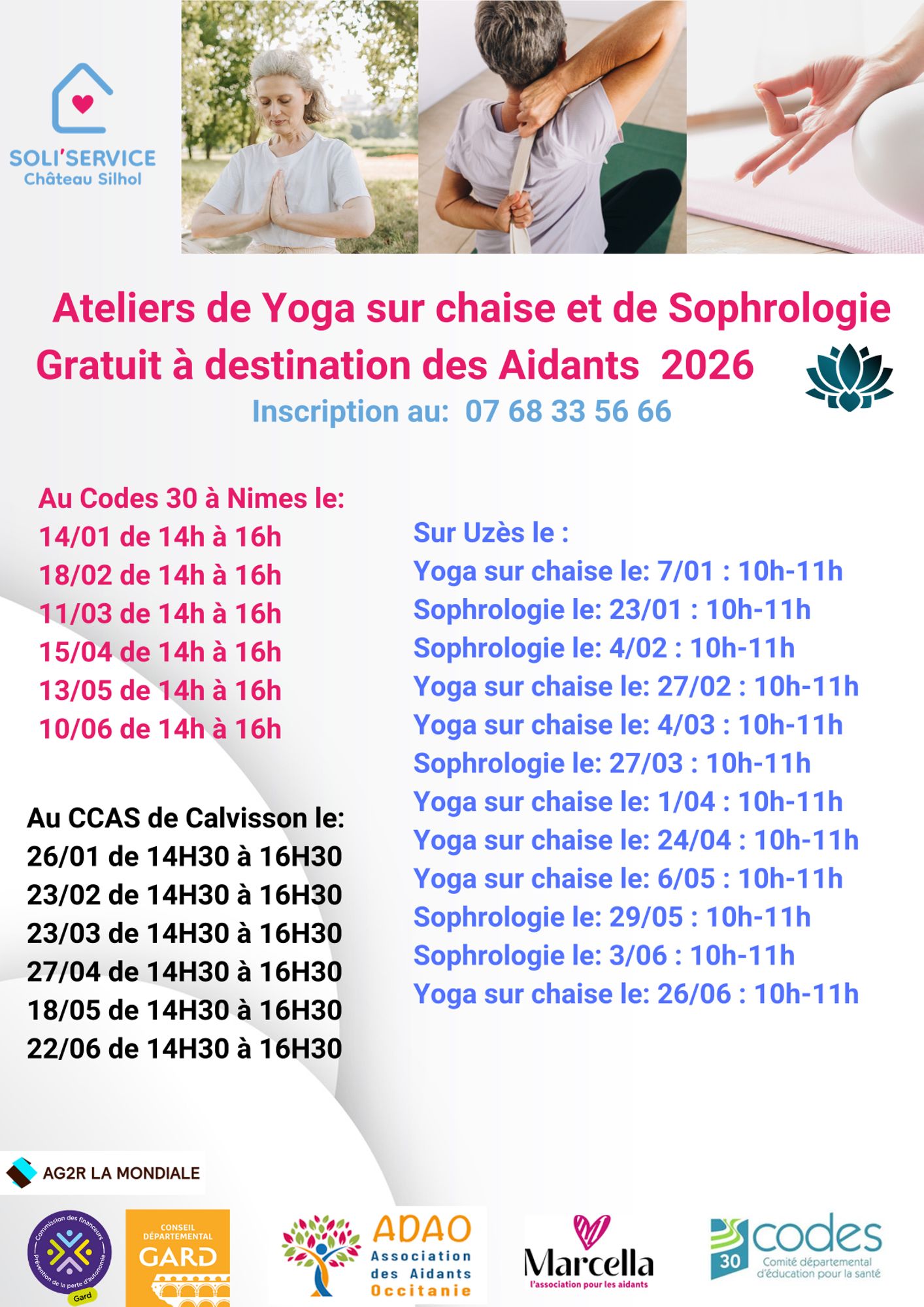 SOLI'SERVICE Château Silhol propose des ateliers de Yoga sur chaise et de Sophrologie à destination des aidants.