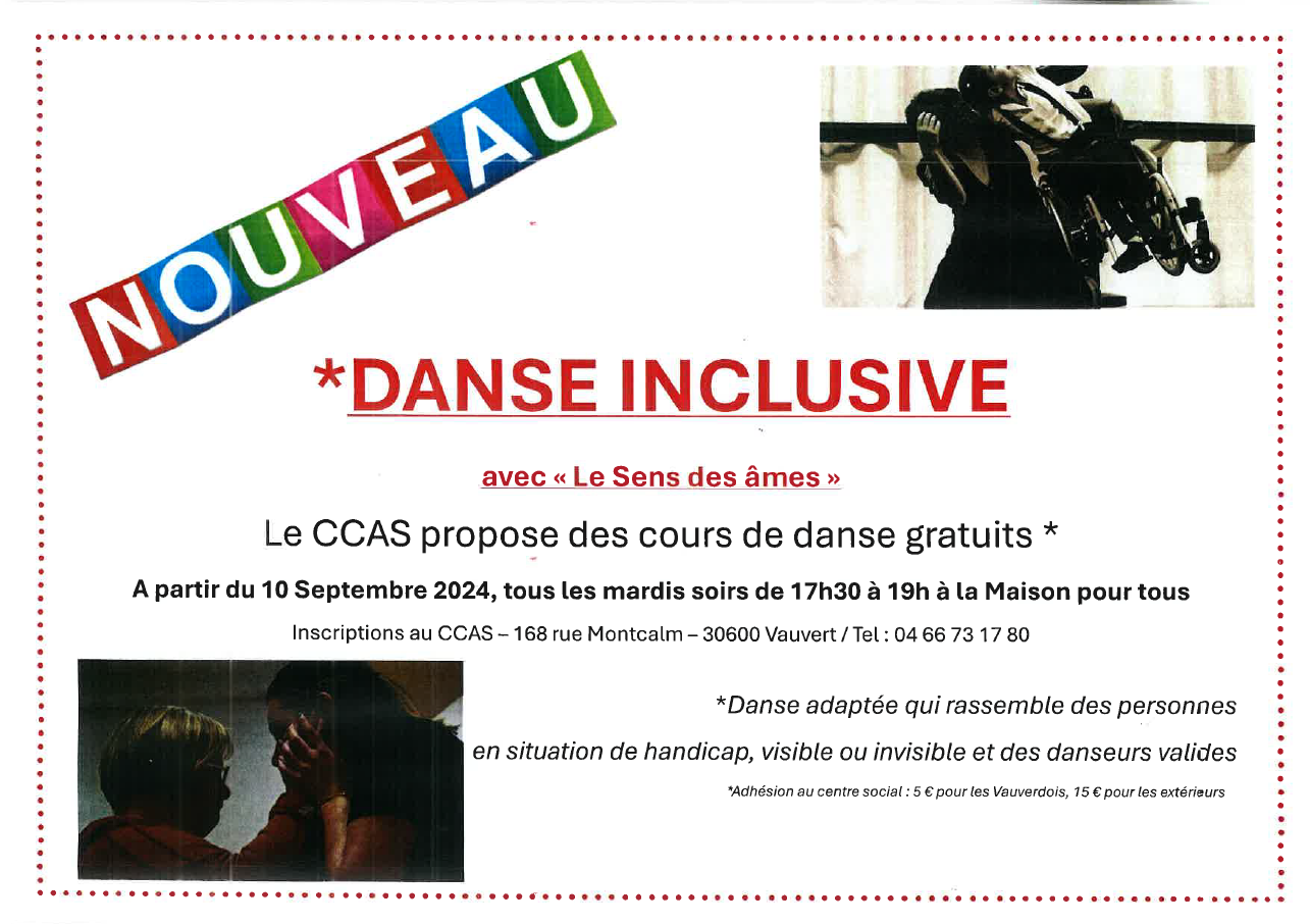 Le sens des âmes - Danse inclusive : les mardis de 17h30 à 19h, Hall du Coudoyer, Maison pour tous - NOUVEAU, sur inscription au CCAS (flyer téléchargeable en bas de page)