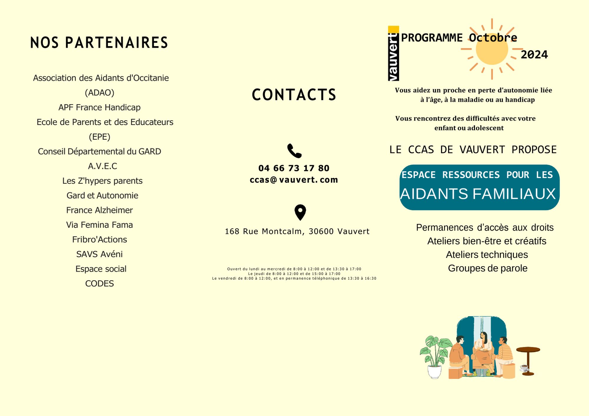 Le CCAS de Vauvert propose un espace ressources convivial pour trouver du soutien et accompagner celles et ceux aidant des personnes en situation de handicap (parent ou enfant) ou d’un enfant difficile à comprendre ou d’un parent en perte d’autonomie. Cet espace confortable et en accès libre propose aussi des permanences, des groupes de parole et des ateliers. Voici les permanences qui s’y dérouleront au mois de mai à l’attention des aidants