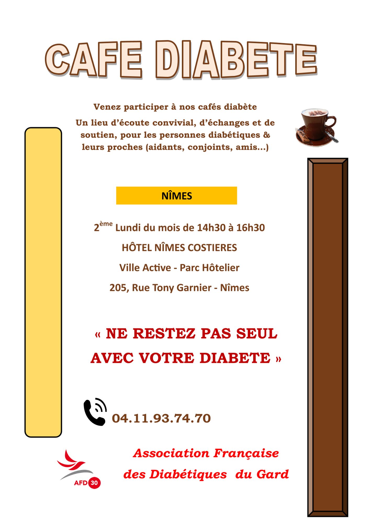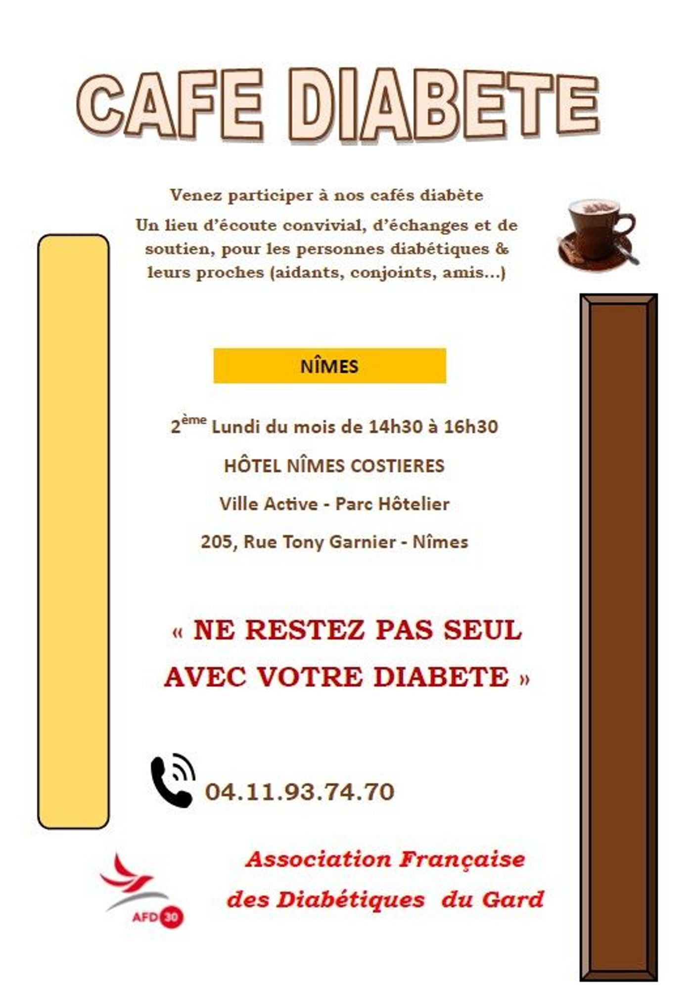L'Association Française des Diabétiques du Gard (AFD 30) organise chaque mois un Café diabète.