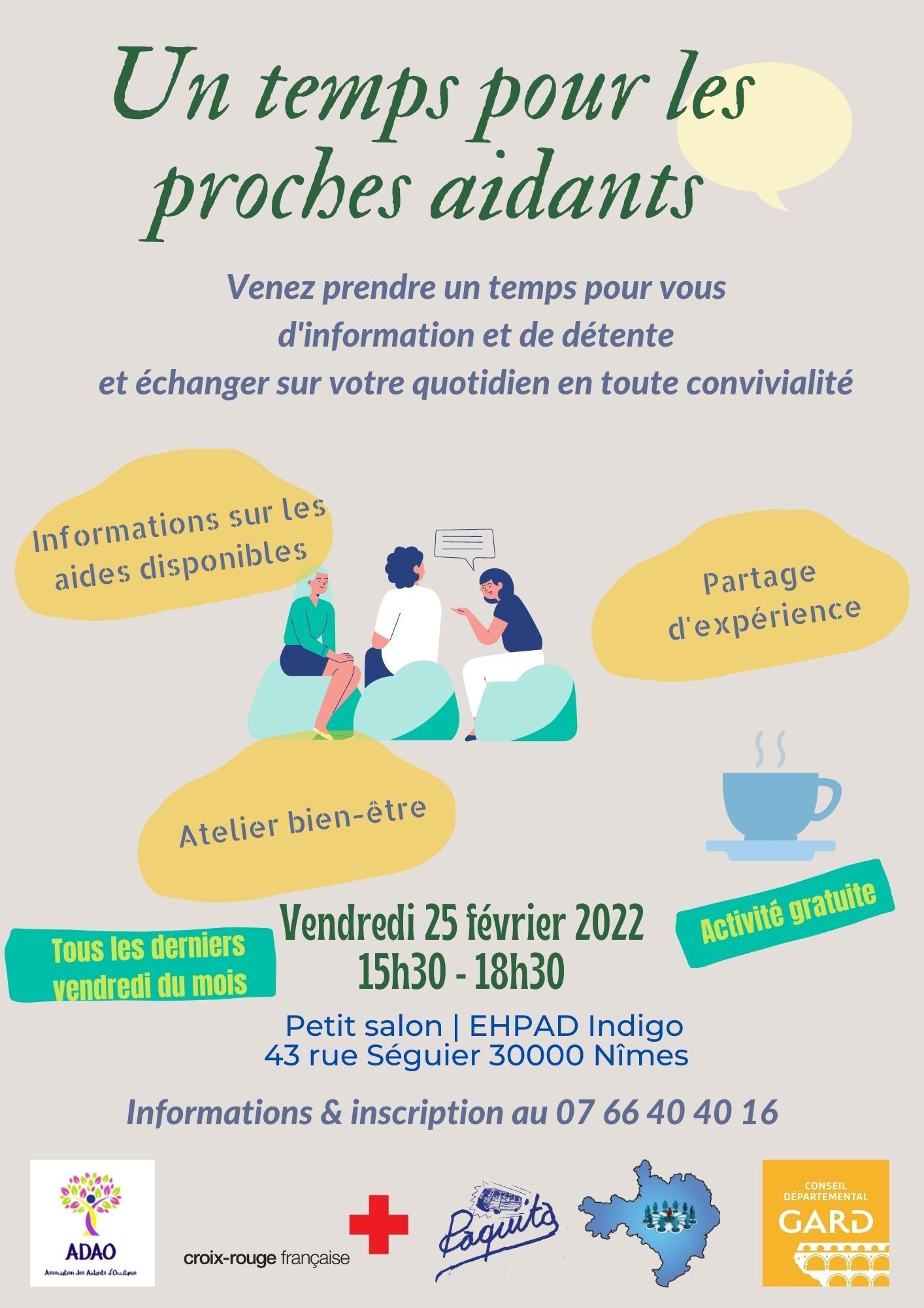 Le Tiers-Lieu "Paquita" (tiers-lieu mobile) de la Croix Rouge Française organise chaque mois, en partenariat avec ADAO (Association Des Aidants d'Occitanie), une après-midi de partage, d'information, et d'échange sur Nîmes.