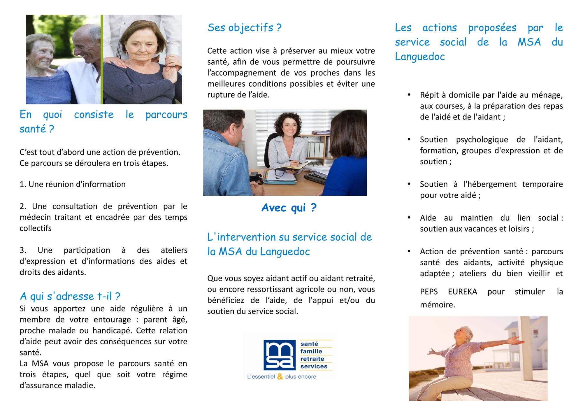 La MSA propose un Parcours de santé pour les proches aidants. Il a pour but d'aider les aidants à préserver leur santé pour qu'ils puissent continuer à accompagner leur proche dans les meilleures conditions possibles.