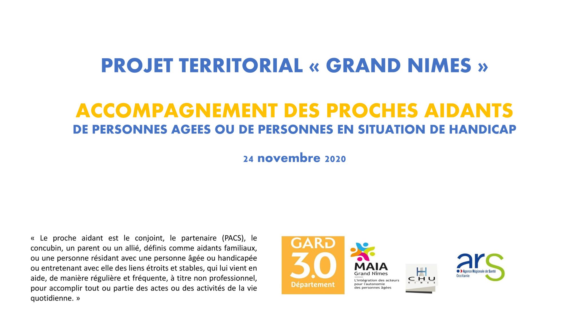 Une réunion de lancement a eu lieu le 24 novembre 2020 pour intier une démarche territoriale en faveur des proches aidants sur le territoire de la MAIA Grand Nîmes.