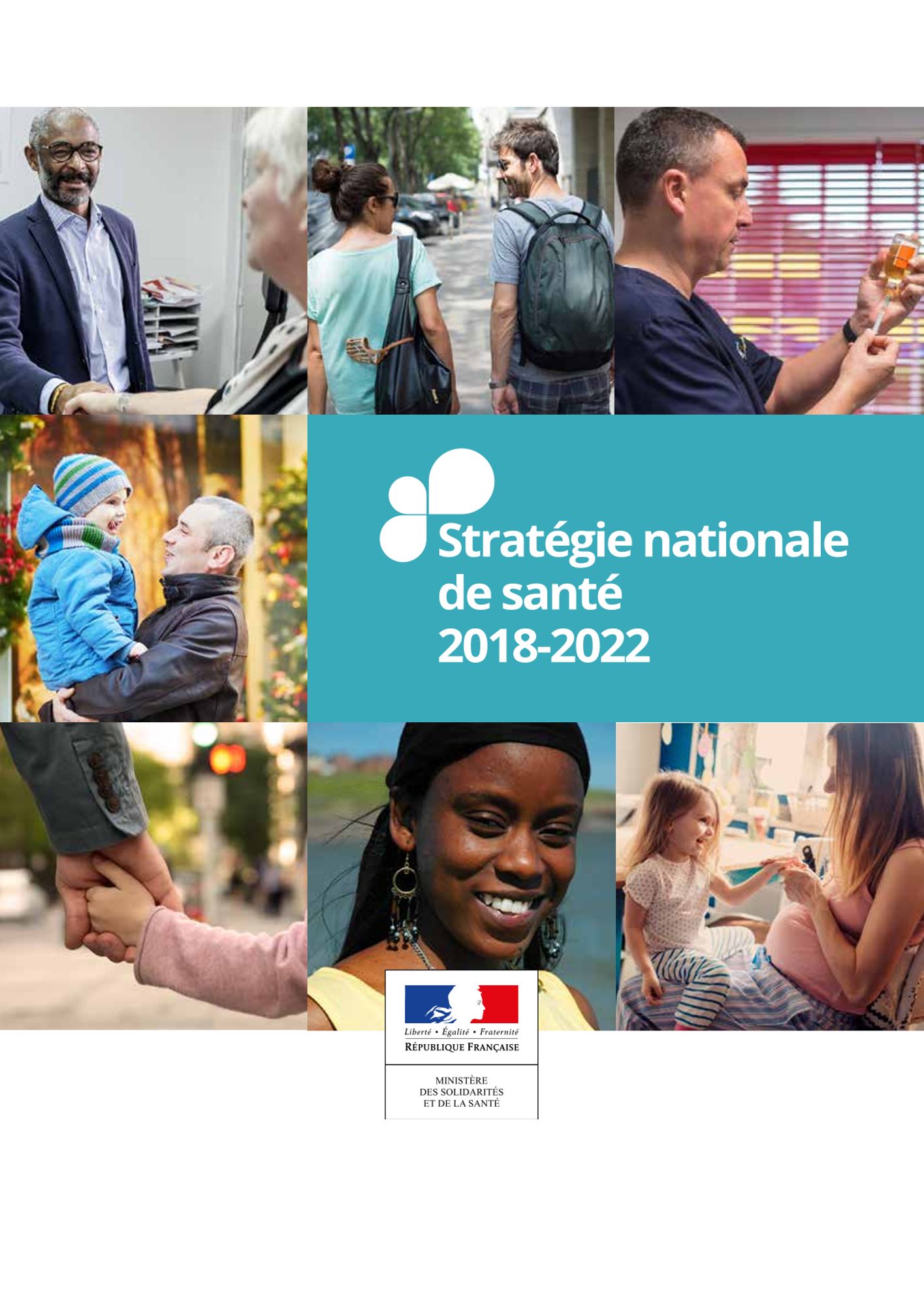 La Stratégie nationale de santé 2018-2022 établit les objectifs en termes de santé et le cadre de référence des politiques publiques. Elle aborde la question des proches aidants (par l'accompagnement, en proposant le développement de dispositifs de répit sur le territoire ...), de la perte d'autonomie (sur un plan de prévention - anticiper la perte d'autonomie, proposer des mesures d'accompagnement aux proches ...), de la désinsertion professionnelle et sociale des malades/blessés/victimes d'accidents sanitaires et traumatiques, et de leurs aidants (en renforçant les politiques de maintien en emploi).