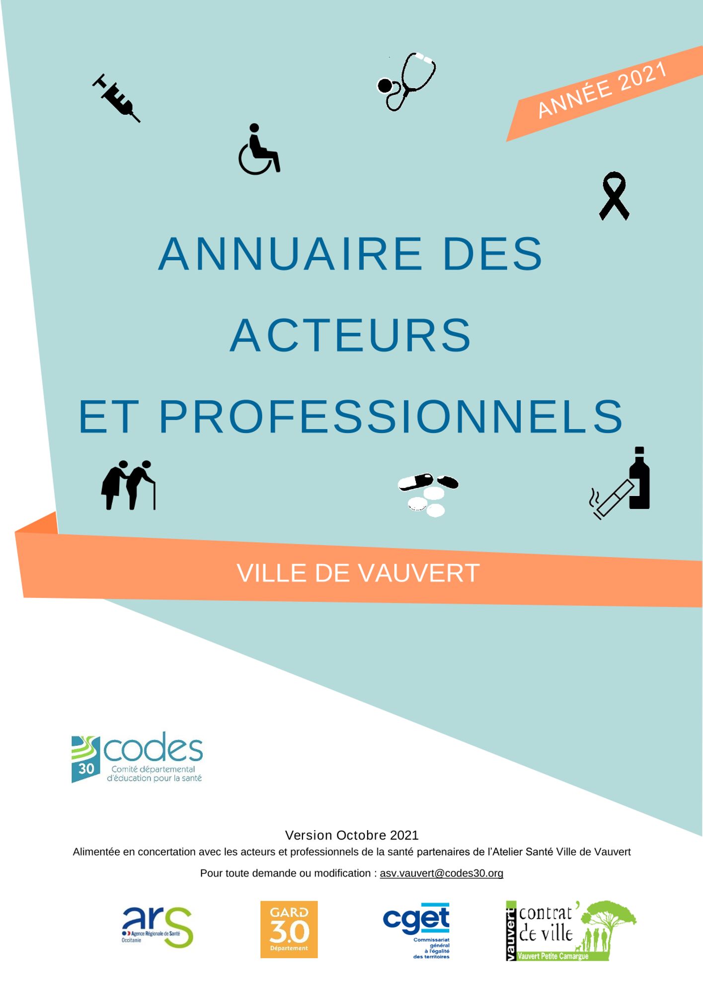 Cette version de l'annuaire est évolutive en fonction des attentes et remarques des professionnels découlant de leur usage quotidien. Tout au long de l'année il pourra être alimenté par la coordinatrice de l'ASV de Vauvert.