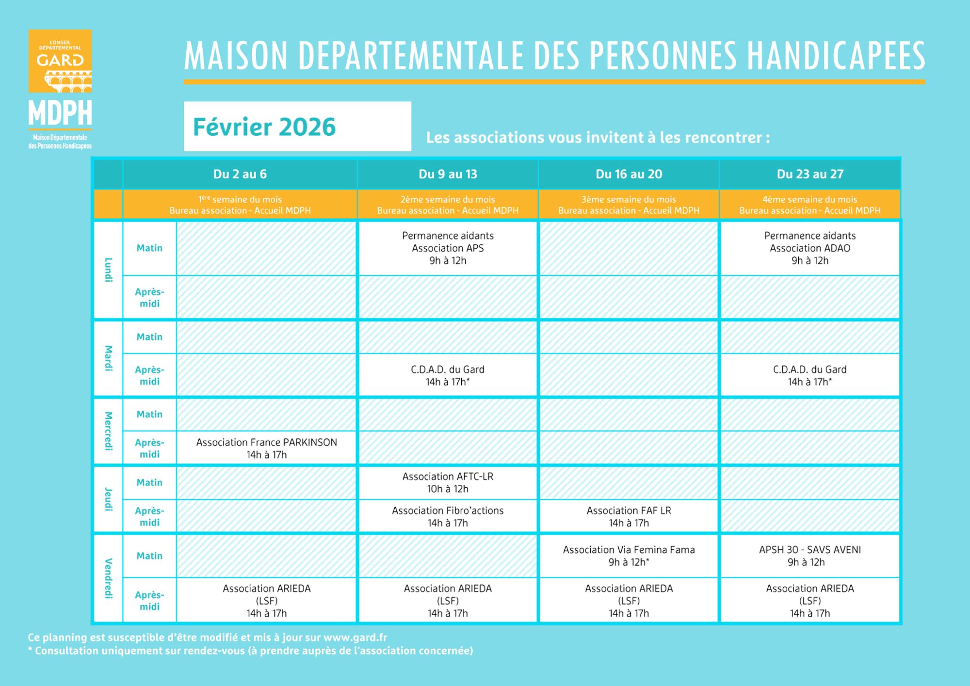 Vous aidez une personne âgée, une personne en situation de handicap ou atteinte de maladie chronique ? Une permanence est ouverte rien que pour vous à la Maison des Personnes Handicapées du Gard, 176 bd Salvador Allende à Nîmes !